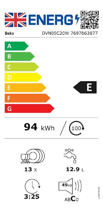 Beko 60cm Full Size Dishwasher (DVN05C20W)
