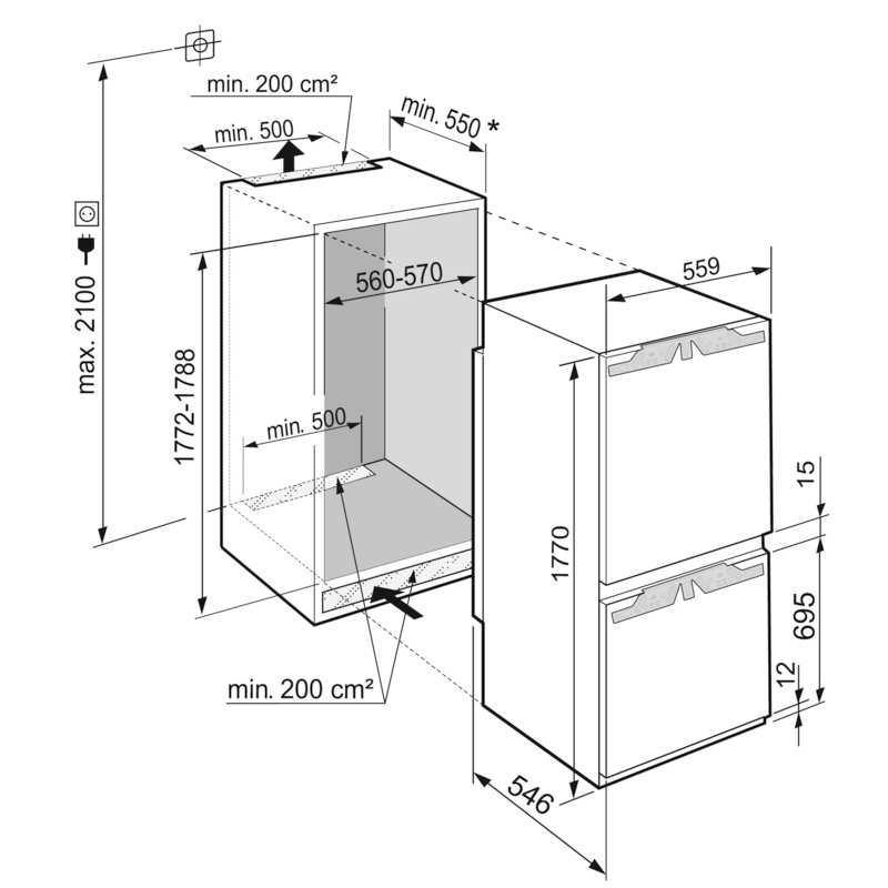 Liebherr 'Pure' 60:40 Built-in Frost Free Fridge Freezer (Door on Door) (IKGN51VE03)