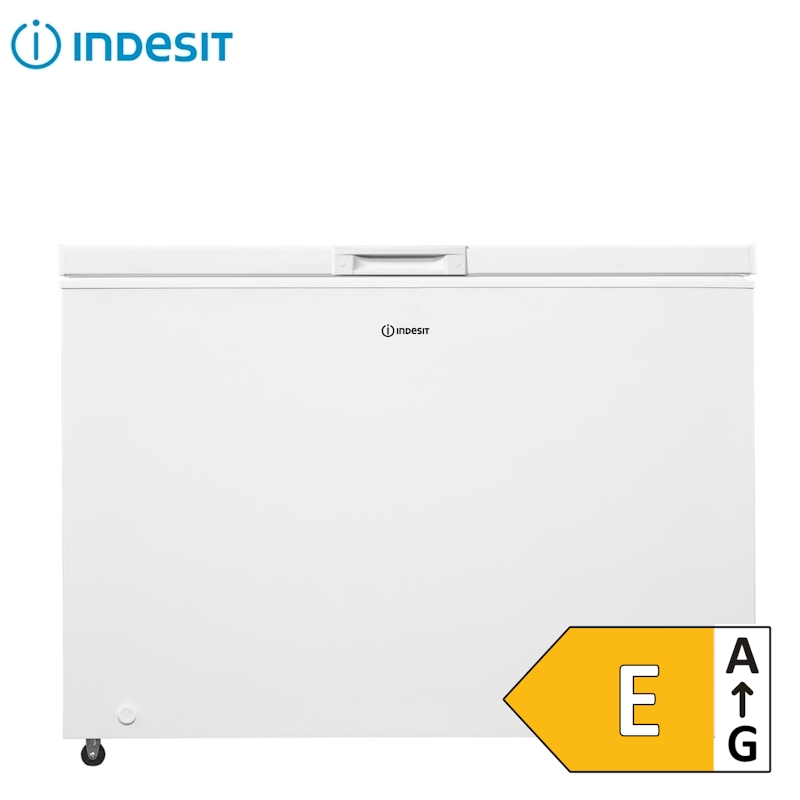 Garage safe compact chest freezer from Indesit with 308L of interior space.
