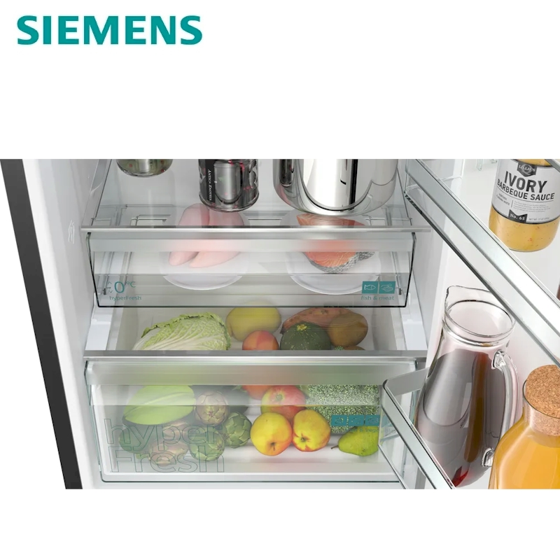 Large capacity fridge freezer from Siemens, with a great energy rating of B, and thanks to its hyper fresh system, your fresh produce will last longer too, helping to cut down on food waste.